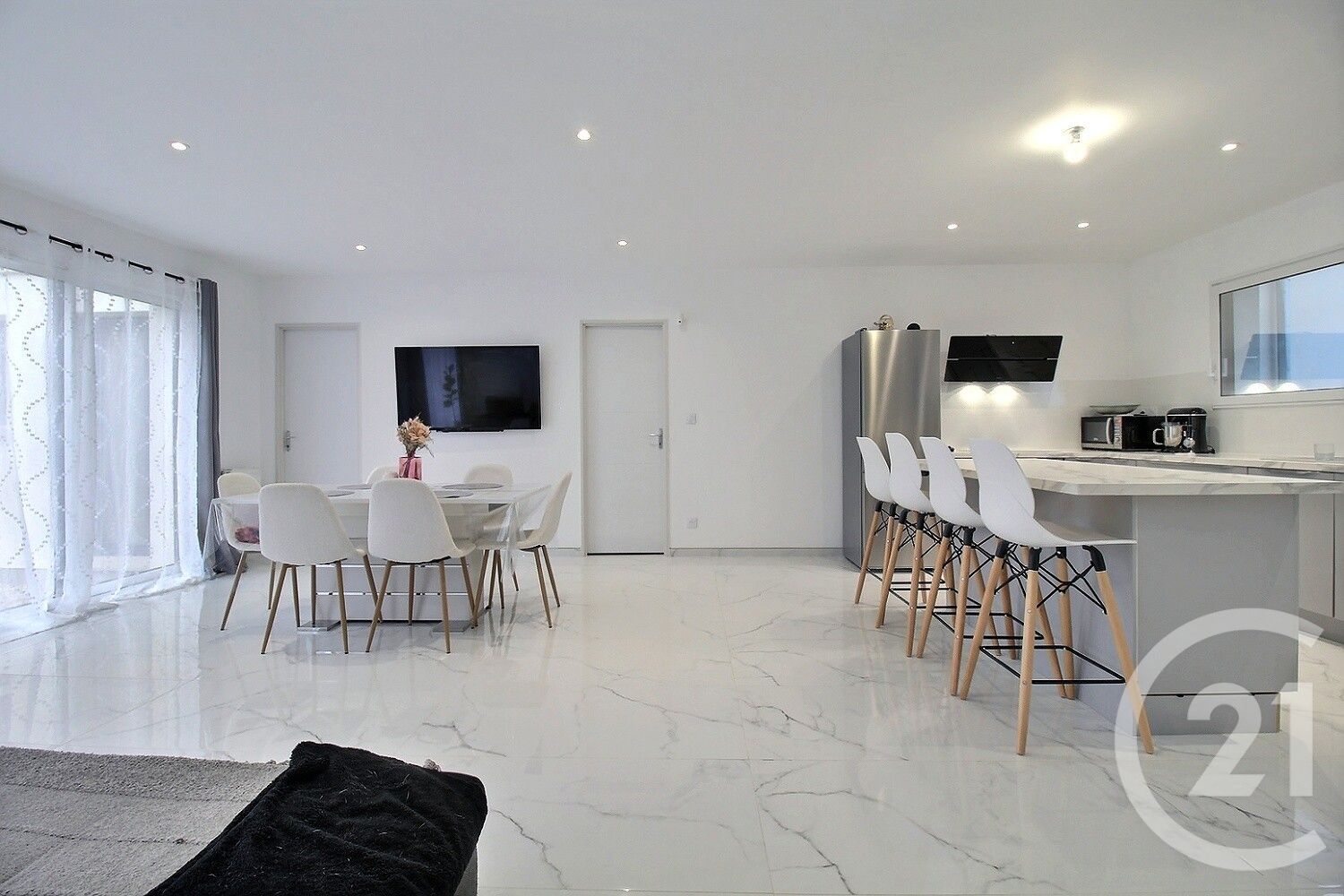 La maison séduit par sa belle pièce de vie lumineuse avec cuisine ouverte, pensée pour le confort et la convivialité.